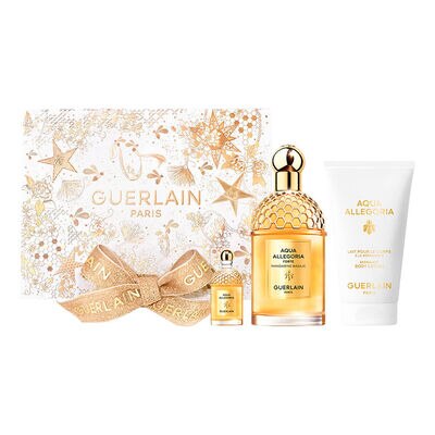 Alguns kits apresentam combinações coordenadas de fragrâncias, incluindo perfumes, loções corporais e géis de banho, para uma experiência de fragrância completa.